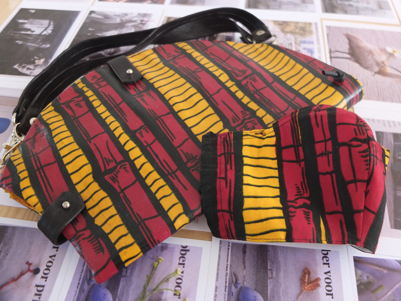 accessoire bij accessoire.. tasje met bijpassend mondkapje beiden van Vlisco waxprint (tasje gecoated)