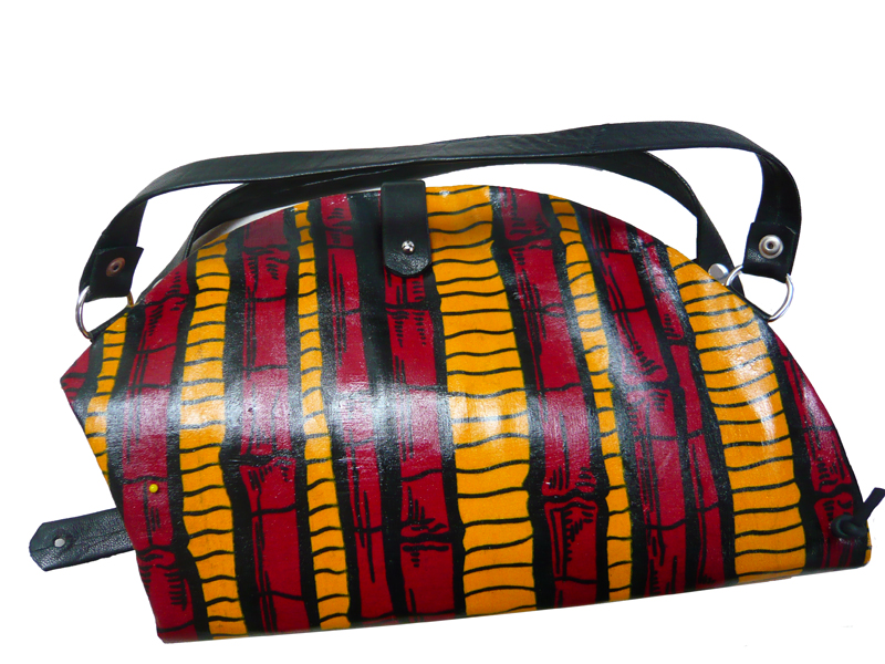 Tasje van gecoate Vlisco Dutch Wax, ook te dragen als rugtas.